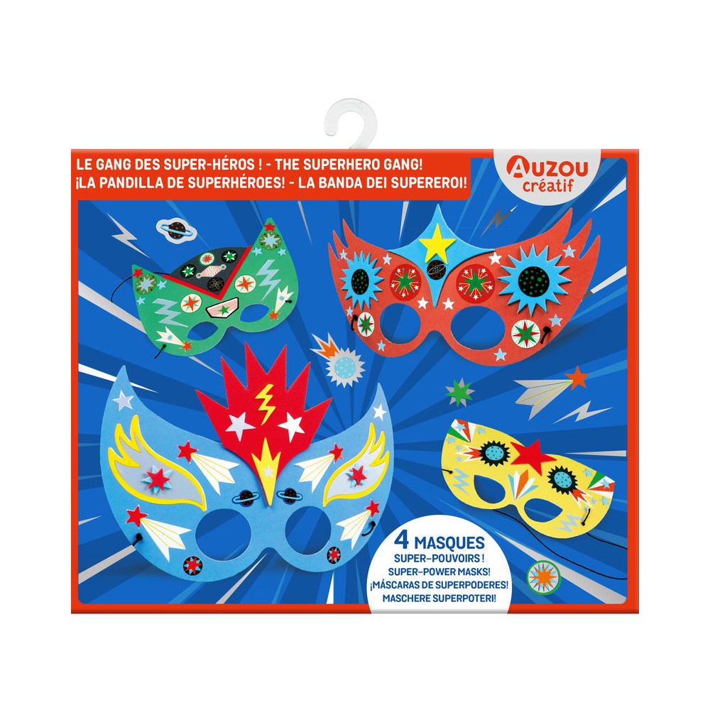 No todos los héroes llevan capa, ¡pero sí pueden llevar una máscara superchula! En este kit encontrarás 4 máscaras diferentes de superpoderes para decorar con pegatinas de colores, brillantes o de espuma. Usa este set para crear divertidas máscaras, ocultar tu identidad secreta y luego salvar la ciudad del mal. ¡Rápido, la gente te necesita!