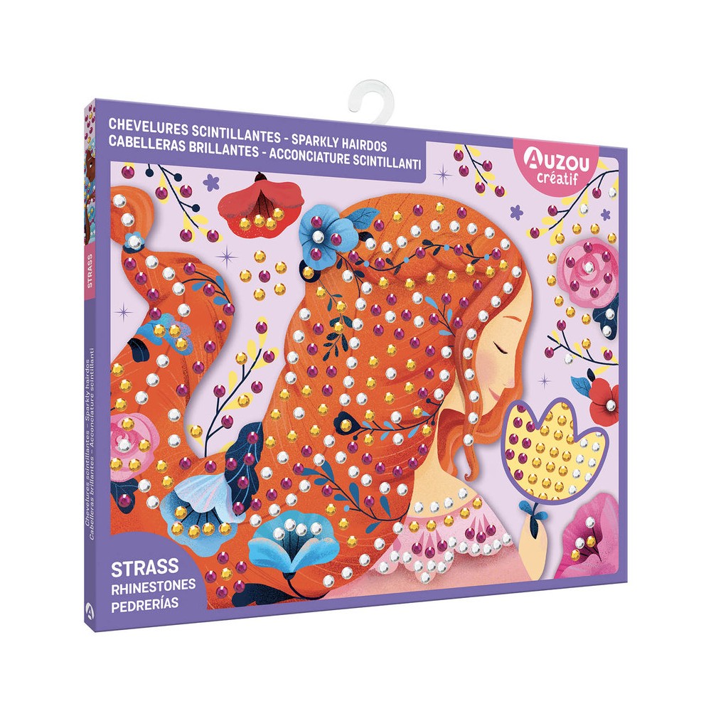 Un kit que propone 4 bonitos peinados para decorar con gemas multicolores.