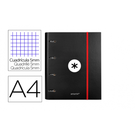 Carpeta con recambio antartik a4 cuadro 5mm forrada 4 anillas 40mm redondas con solapa color NEGRO