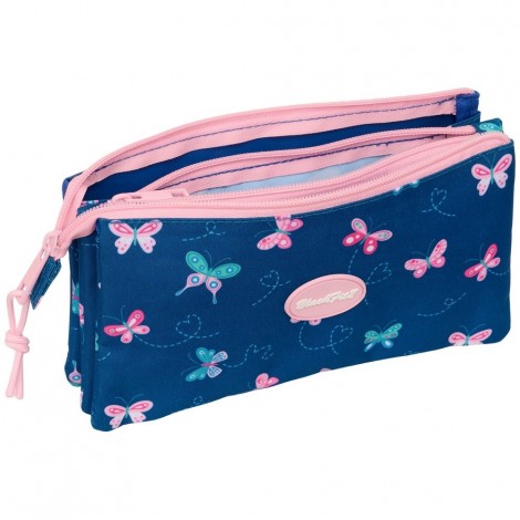 Portatodo Triple BLACKFIT8 MARIPOSAS Safta con 3 Compartimentos Independientes, Ideal para Escuela y Organización Escolar
