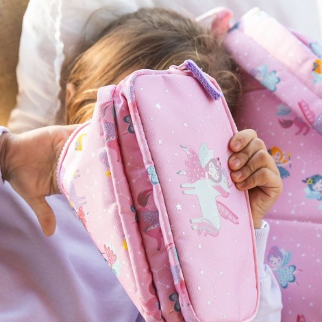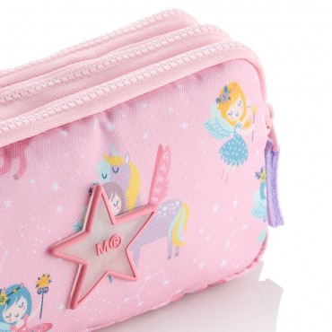 Portatodo triple rectangular reciclado Fada Miquelrius. Estuche práctico, organizado y sostenible para el colegio.