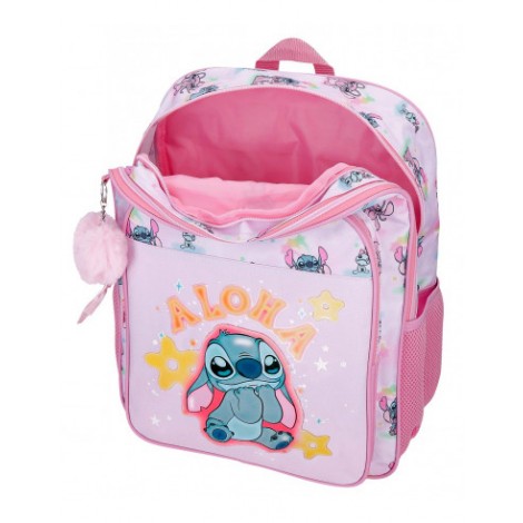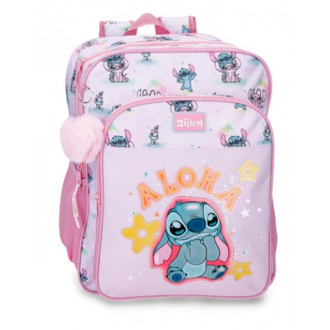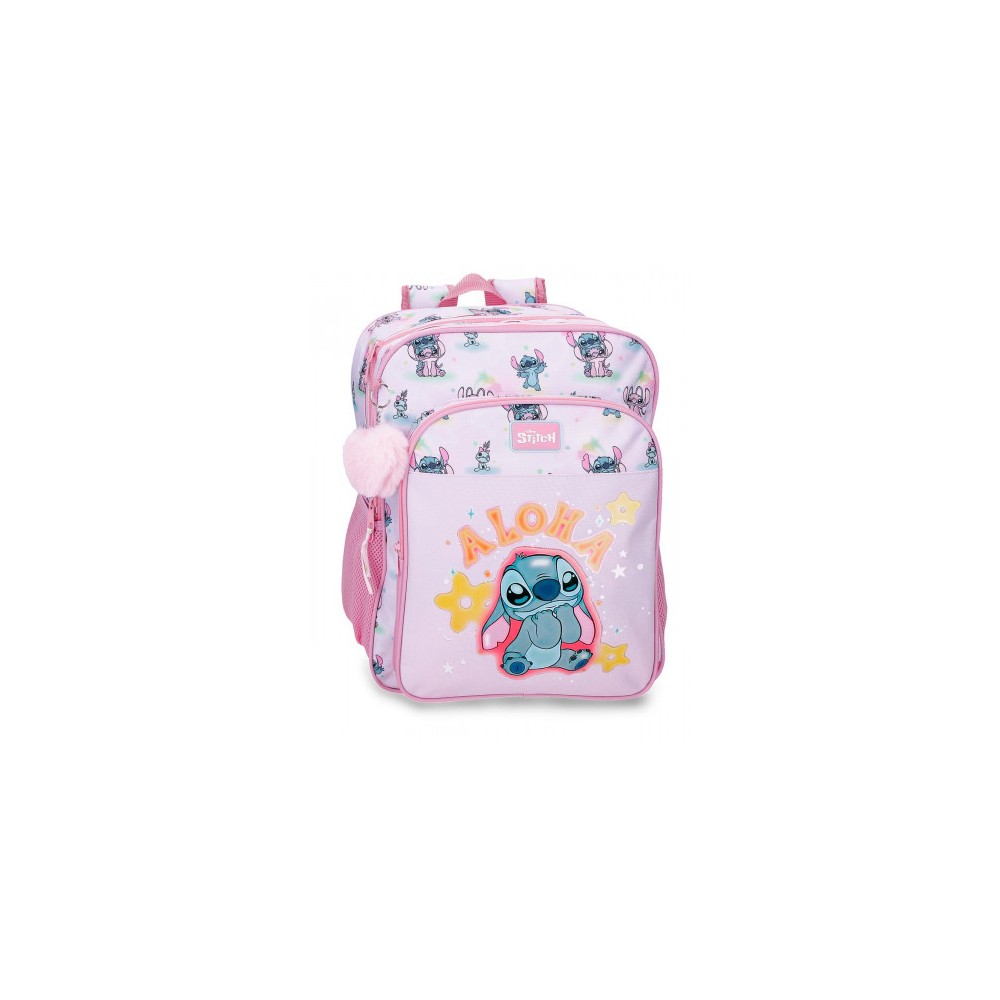 Mochila Stitch 40 cm adaptable a carro con 2 compartimentos. Práctica y resistente para el colegio.