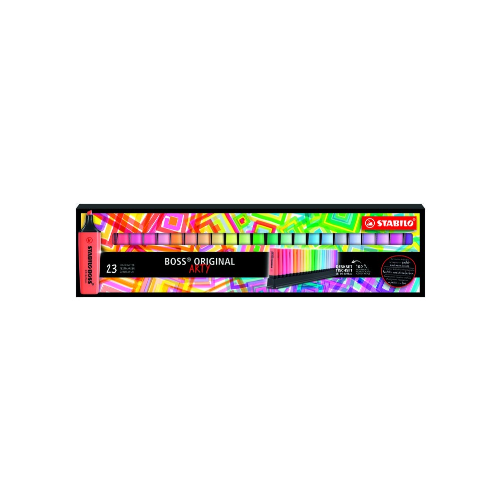 MARCADORES SET ROTULADORES STABILO BOSS 23 PIEZAS FLUORESCENTES PASTEL TRASLUCIDOS PARA RESALTAR CON PEANA DE SUJECION