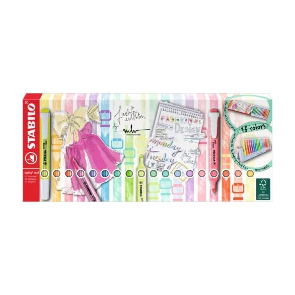 Set 18 marcadores fluorescentes stabilo swing cool pastel 8 fluor+10 pastel