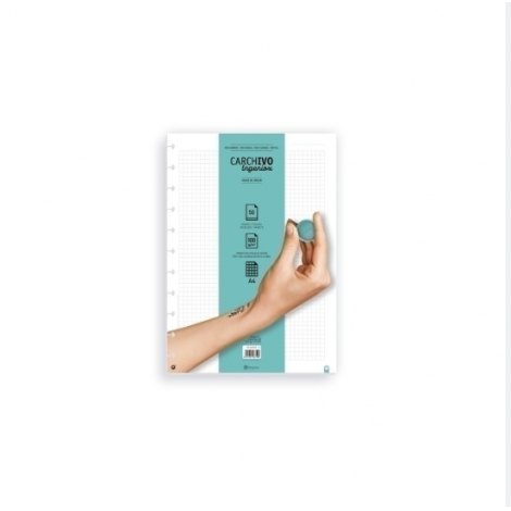 Recambio cuaderno carchivo ingeniox a4 50 hojas cuadrícula 5x5 100 g perforado y extraíble