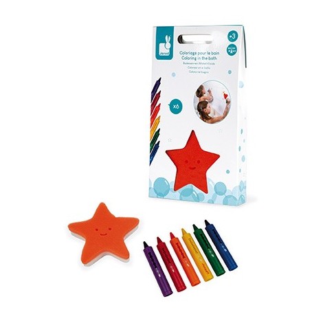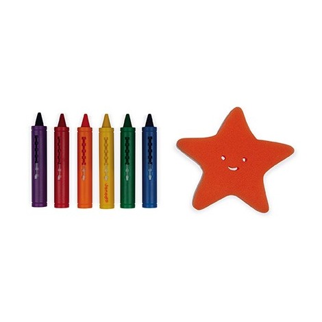 Para niños a partir de 3 años ¡6 pinturas y una esponja con forma de estrella de mar para dibujar en el baño, borrar y volver a empezar una y otra vez!
