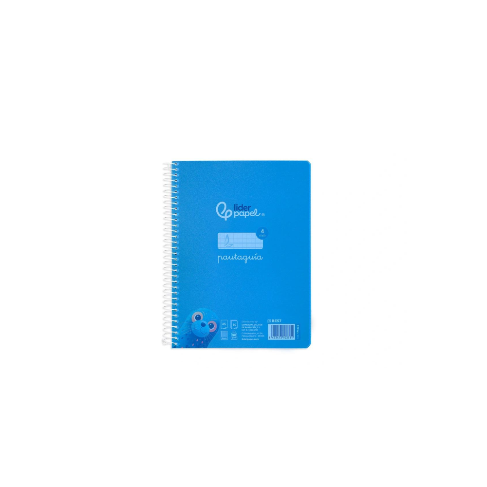Cuaderno espiral liderpapel din a5 pautaguia tapa plastico 80h 90gr cuadro pautado 4mm con margen color azul.