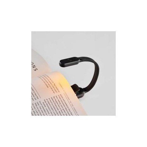 Luz de lectura con cuello flexible y clip. Batería: 10 horas. Modos de luz: Ámbar, blanco frío y blanco cálido Cable de carga incluido, entrada USB C. Caja: 80 x 95 x 27 mm Luz de lectura: 215 x 25 mm