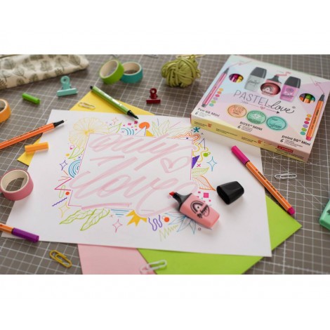Este set especial de STABILO combina lo mejor de sus productos en tonos pastel, ofreciendo una experiencia de escritura y resaltado única. Diseñado en colaboración con la artista de lettering Hannah Rabenstein, el estuche incluye:6 rotuladores premium Pen 68 Mini: Ideales para colorear y dibujar, ofrecen colores intensos y una punta robusta para trazos uniformes.