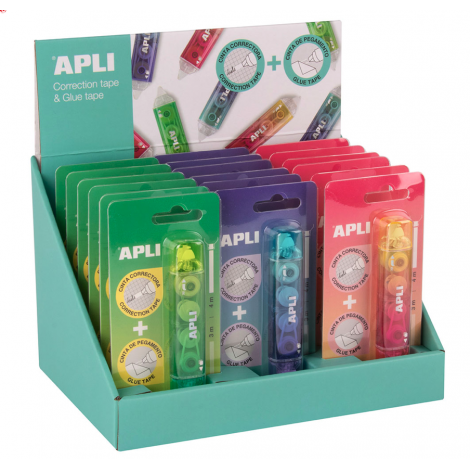 Cinta 2 en 1 Apli: correctora y adhesiva en un solo producto.
