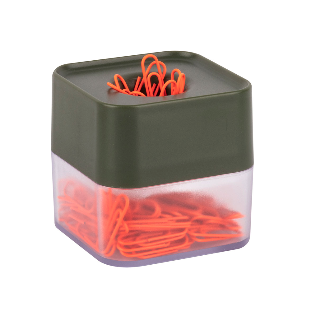- Dispensador con base transparente, permitiendo ver la cantidad de clips disponibles.