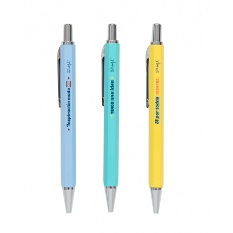 Mensajes positivos en el cuerpo de cada bolígrafo