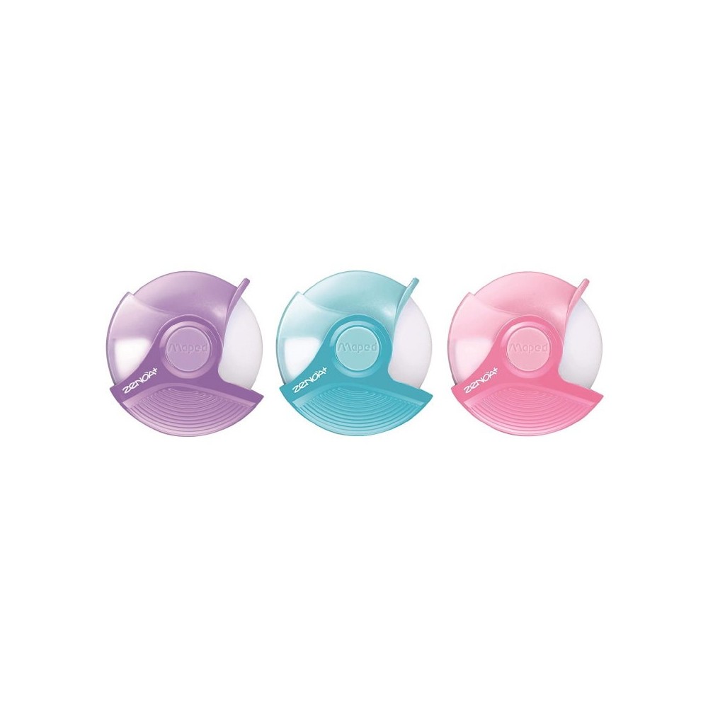 Goma de borrar Zenoa Circular Maped con diseño protector giratorio en colores pastel. Práctica, segura y cómoda. Se envía color aleatorio.