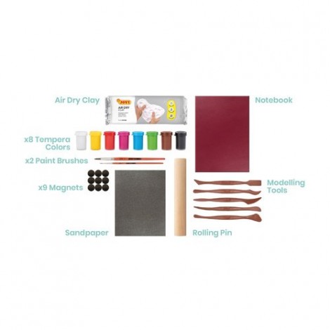 Incluye todo lo necesario para modelar, decorar y transformar figuras en divertidos imanes, ideal para tardes de juego, actividades en familia o como regalo educativo.