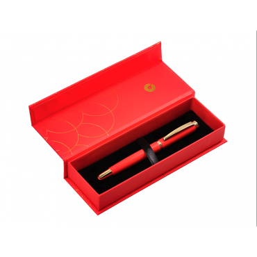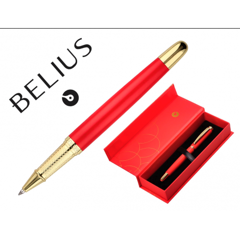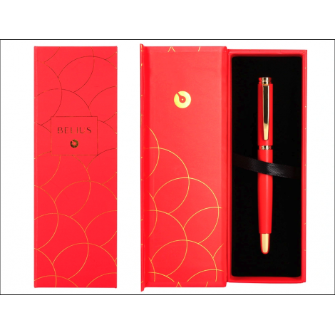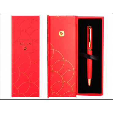 BOLÍGRAFO BELIUS PASSION DOR – ALUMINIO DORADO CEPILLADO CON TINTA AZUL Y CAJA DE DISEÑO ROJO Y DORADO