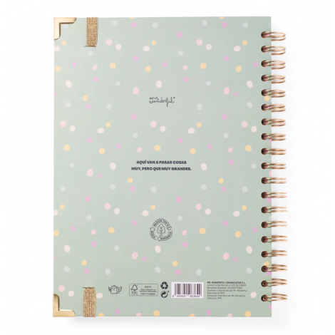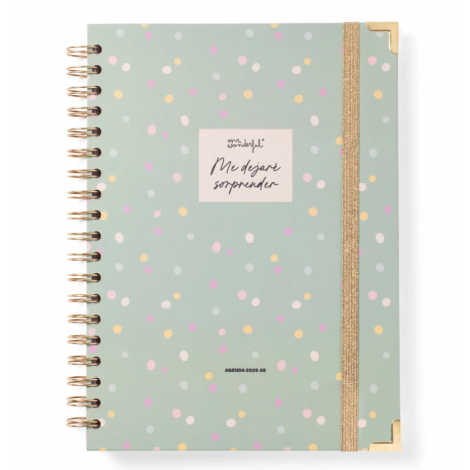 Agenda estilo Office de Mr. Wonderful, un tipo de diseño que presentamos hace algunas ediciones y que es algo más sobrio y contenido que nuestro estilo más clásico, por lo que encantará a un público algo más mayor. Con organización semanal, va de septiembre de 2025 a agosto de 2026 y tiene un tamaño mayor que el resto de las agendas de la colección, por lo que resulta ideal como agenda de escritorio. Esta agenda contiene: