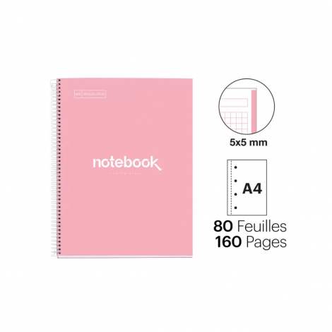 Cuaderno A4 Emotions Miquelrius rosa– 80 Hojas Cuadro 5 mm Notebook 1 Tapa Dura