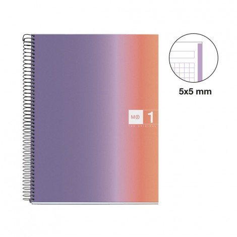 Libreta A4 Miquelrius Aurora con 80 hojas cuadriculadas de 90 g/m². Diseño elegante, papel de alta calidad y tapa resistente. Ideal para instituto, universidad u oficina.