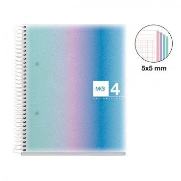 Libreta A5 Miquelrius Aurora con 120 hojas de papel 70 g/m², cuadrícula 5 mm y cubiertas de polipropileno. Compacta, ligera y resistente. Ideal para apuntes y organización diaria.