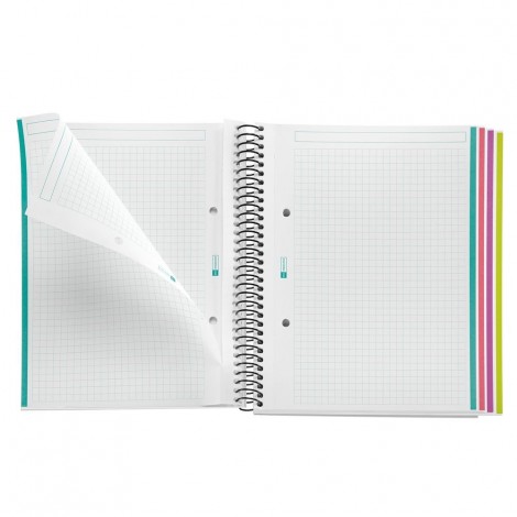 Las cubiertas están fabricadas en polipropileno (PP), un material resistente, flexible y duradero que protege las hojas y mantiene la libreta en perfecto estado incluso con un uso intensivo.