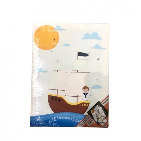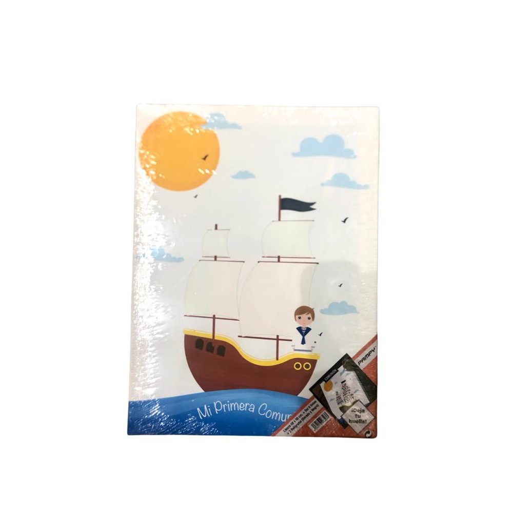 Lienzo de Huellas "Mi Primera Comunión" con Diseño de Barco – Recuerdo Personalizado para un Día Especial