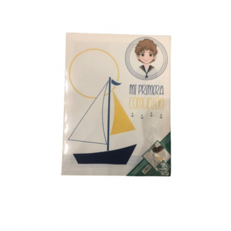 Lienzo "Mi Primera Comunión" con diseño de barco, incluye pintura de dedos y bolígrafos. Un recuerdo original y personalizado creado por los invitados.