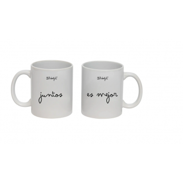 Set de 2 tazas Iconic Mr. Wonderful “Juntos es mejor”. Cerámica resistente con diseño elegante. Capacidad: 370 ml cada una.