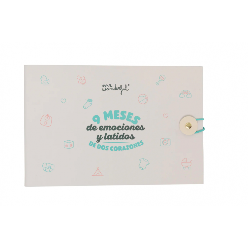El álbum de fotos Mr. Wonderful “9 meses de emociones y latidos de dos corazones” es un precioso cuaderno de recuerdos para conservar los momentos más especiales del embarazo. Diseñado con ilustraciones encantadoras y frases tiernas, este álbum permite documentar cada etapa de esta aventura tan única: desde la primera ecografía hasta el día del nacimiento. Incluye páginas para pegar fotos, escribir anécdotas y reflexionar sobre todo lo vivido durante la espera.