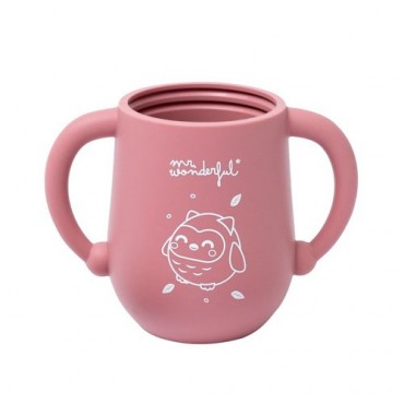 Vaso antiderrame Mr. Wonderful “Búho rosa”. Con asas, tapa antigoteo y diseño divertido. Capacidad 200 ml. Apto para lavavajillas.