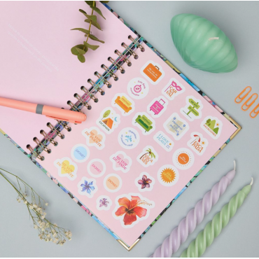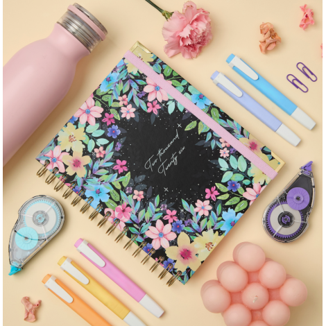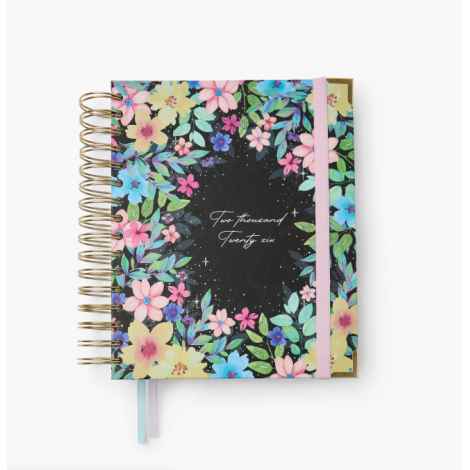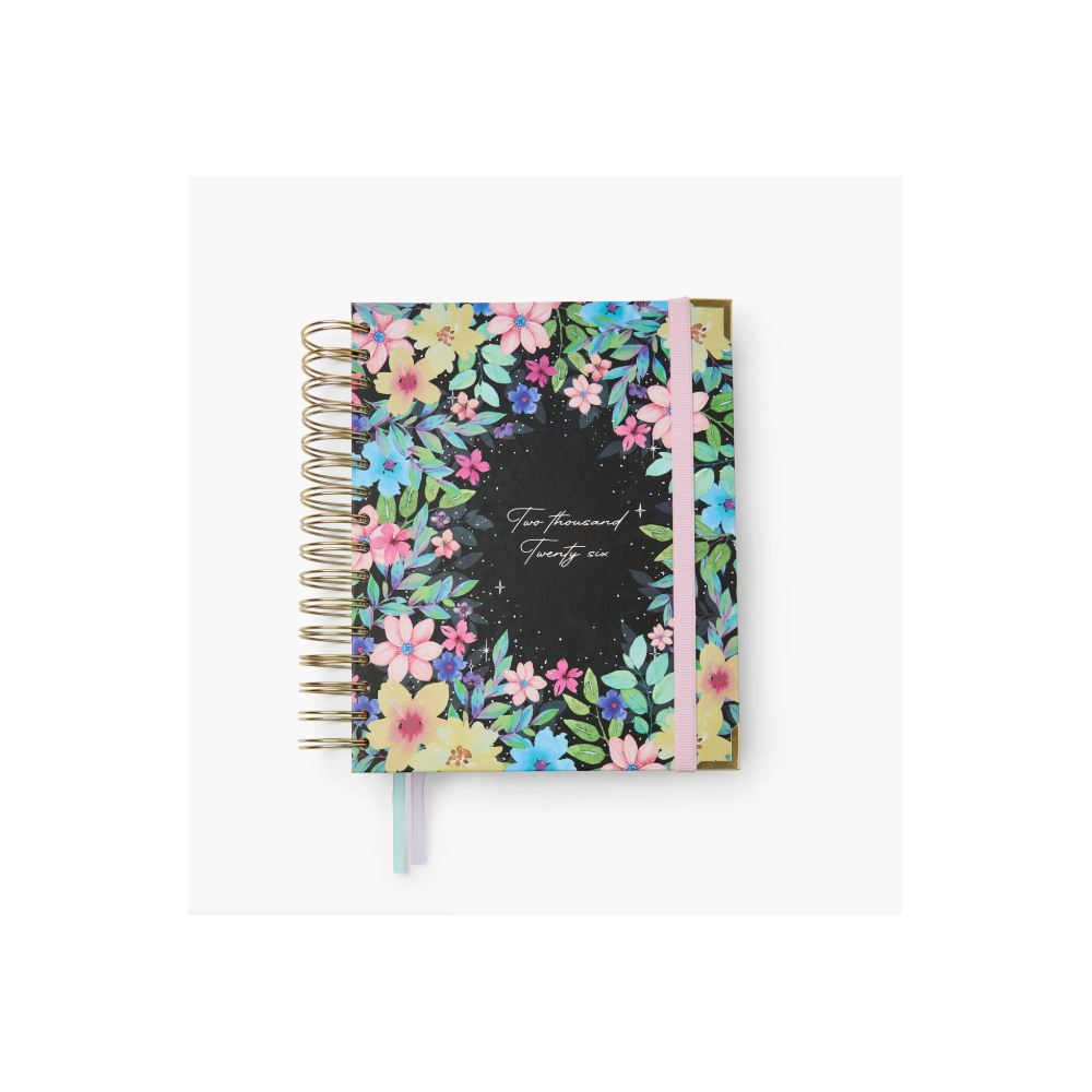 Su tamaño A6 compacto facilita llevarla siempre contigo, ya sea en el bolso, mochila o maletín. Además, cuenta con tapa dura resistente, cierre elástico y diseño cuidado, ofreciendo comodidad y durabilidad durante todo el año.