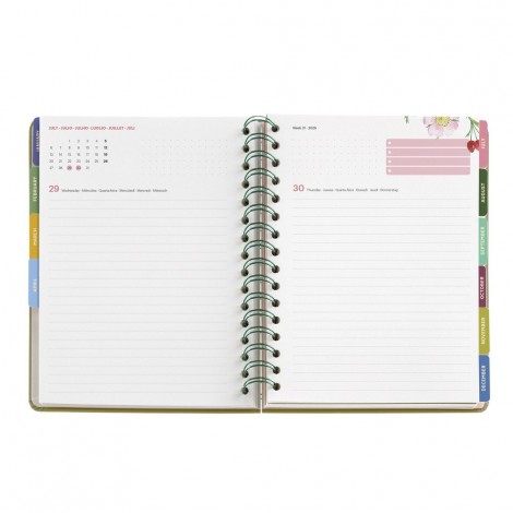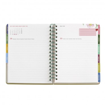 Su elegante diseño Amapola Entredos se combina con una resistente encuadernación Wire-O, que facilita una apertura completa y cómoda. El papel es de alta calidad, evitando el traspaso de tinta. Además, incluye planificadores mensuales, calendarios anuales y espacio para notas y recordatorios importantes.