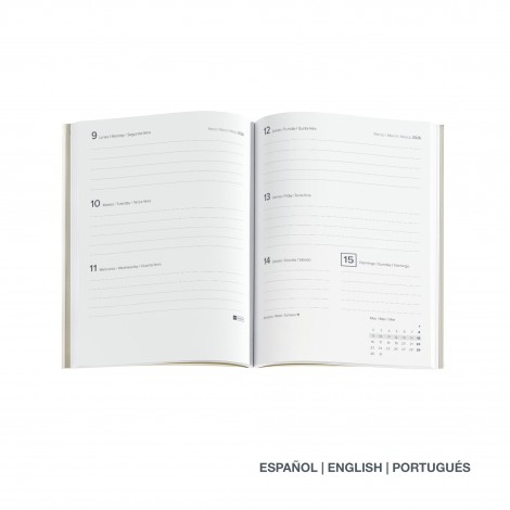Agenda Journal Semana Vista Luxor Flex 2026 Miquel Rius. Diseño flexible y elegante, perfecta para planificar la semana cómodamente.
