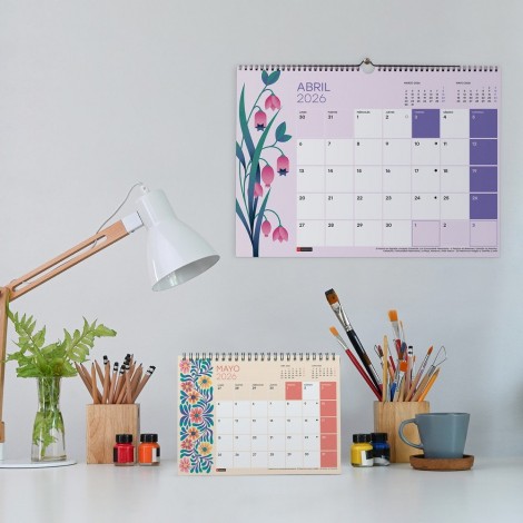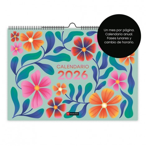 El Calendario de Pared A3 Flores de Miquel Rius combina organización y estilo decorativo en un diseño floral elegante y fresco. Su formato A3 permite visualizar fácilmente cada mes, con amplios espacios para anotar recordatorios, citas y eventos importantes, manteniendo todo bien planificado a lo largo del año 2026.