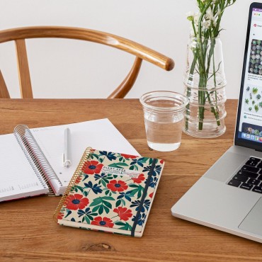 La encuadernación en espiral permite abrirla completamente y escribir cómodamente. El diseño Anémona aporta un estilo delicado y moderno, ideal para estudiantes, profesionales y amantes de las agendas bonitas. El papel de alta calidad evita que la tinta traspase y ofrece una experiencia de escritura fluida. Incluye planificadores mensuales, calendarios anuales y secciones extra para notas.