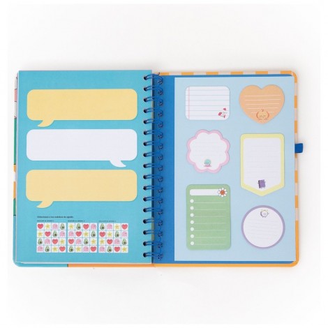 Su diseño colorido, encuadernación resistente y materiales de calidad hacen de esta agenda una excelente compañera para estudiantes, profesionales o amantes de la organización creativa.