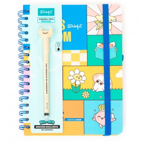 La Agenda Wonder 2026 Semanal Planes Random + Bolígrafo Regalo es perfecta para quienes buscan organizar su año con buen humor, inspiración y un toque de color. Diseñada por Mr. Wonderful, esta agenda combina practicidad con frases positivas que te acompañarán cada semana, ayudándote a planificar tus días de forma motivadora y divertida.